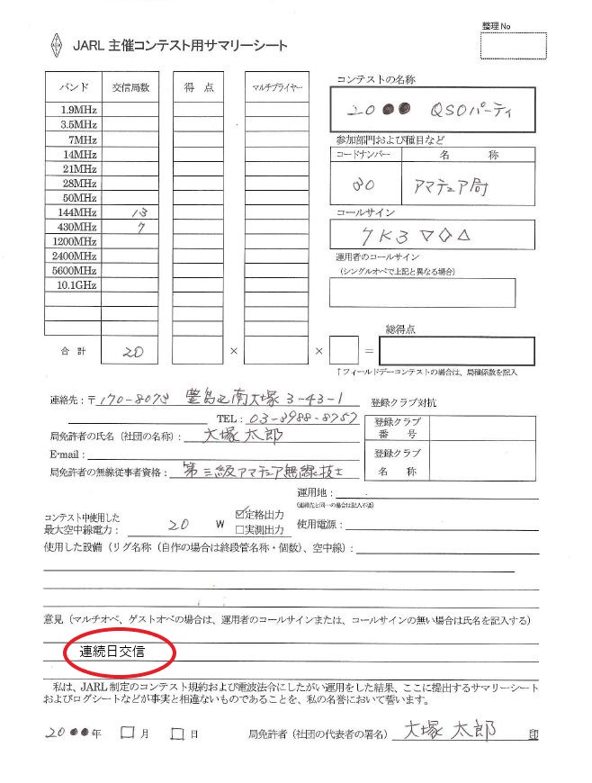 • 提出先 〒170-8073 東京都豊島区南大塚3-43-1 JARL QSOパーティ係