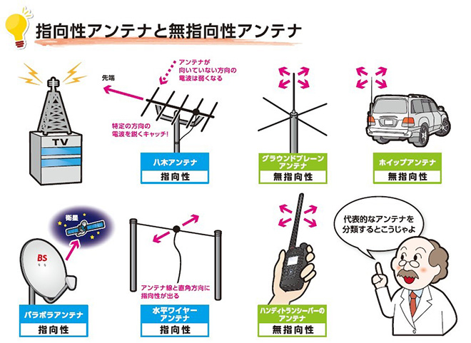 指向性アンテナは、特定の方向に強い電波を送受信するタイプのアンテナです。一方、無指向性アンテナは、電波を全方向に均等に送受信します。