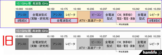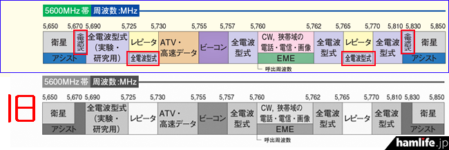 ポイント:2400MHz帯、5600MHz帯、10.1GHz帯の「レピーター専用」部分が、全電波型式で使用可能になりました。