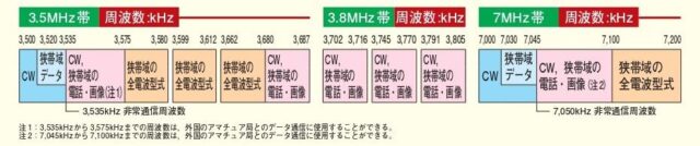 3.5MHz帯・3.8MHz帯・7MHz帯