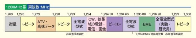 『1293MHz-1294MHzおよび1294.60MHz-1295.80MHzを「全電波型式」区分として、特に運用モード等の制限は設けず様々なモードの運用に対応できるように改正します。