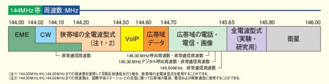 また、144.60-144.70MHzは告示では「すべての電波型式」区分ですが、これまで同様にJARLバンドプランでは「広帯域データ」区分とします。』