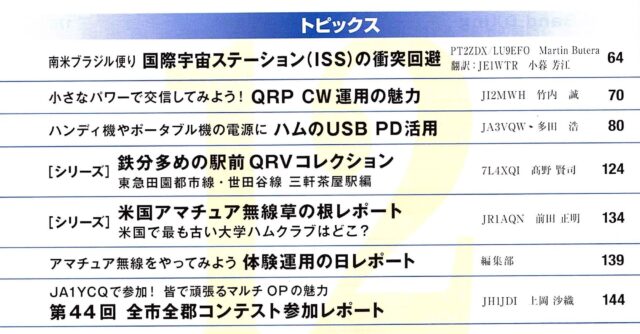 JA1YCQで参加! 皆で頑張るマルチOPの魅力 /第44回 全市全郡コンテスト参加レポート JH1JDI 上岡 沙織 144p