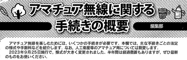 「アマチュア無線の制度改革」が、いよいよ2023年9月25日に施行されました。新しい手続きについての解説です。232p