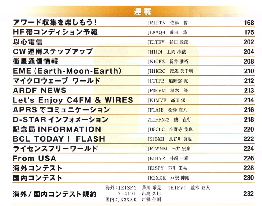 紹介した他にも「CW運用ステップアップ(204p)」「入門ハムの英会話(150p)」が連載中です。