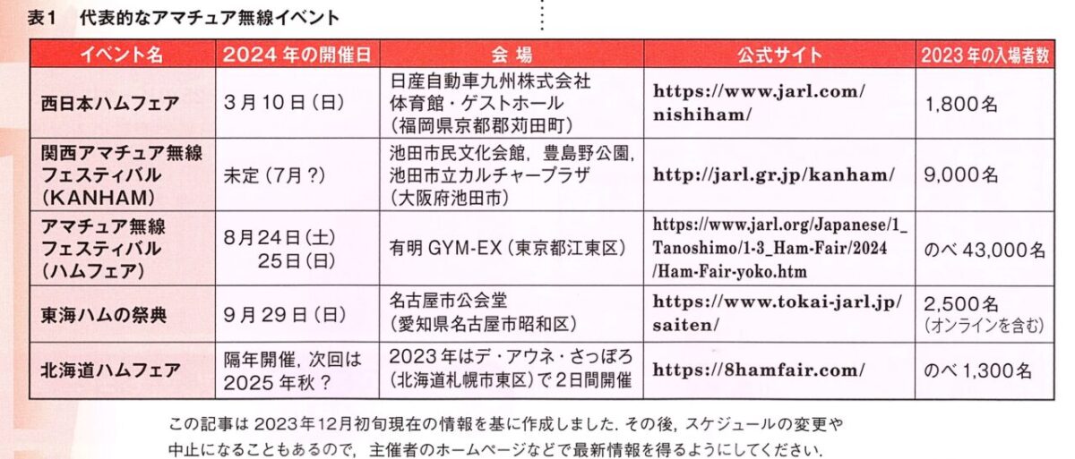 2024年、アマチュア無線界では沢山のイベントが開催されます。気になるものは「ハム手帳」に記入しておこう!!