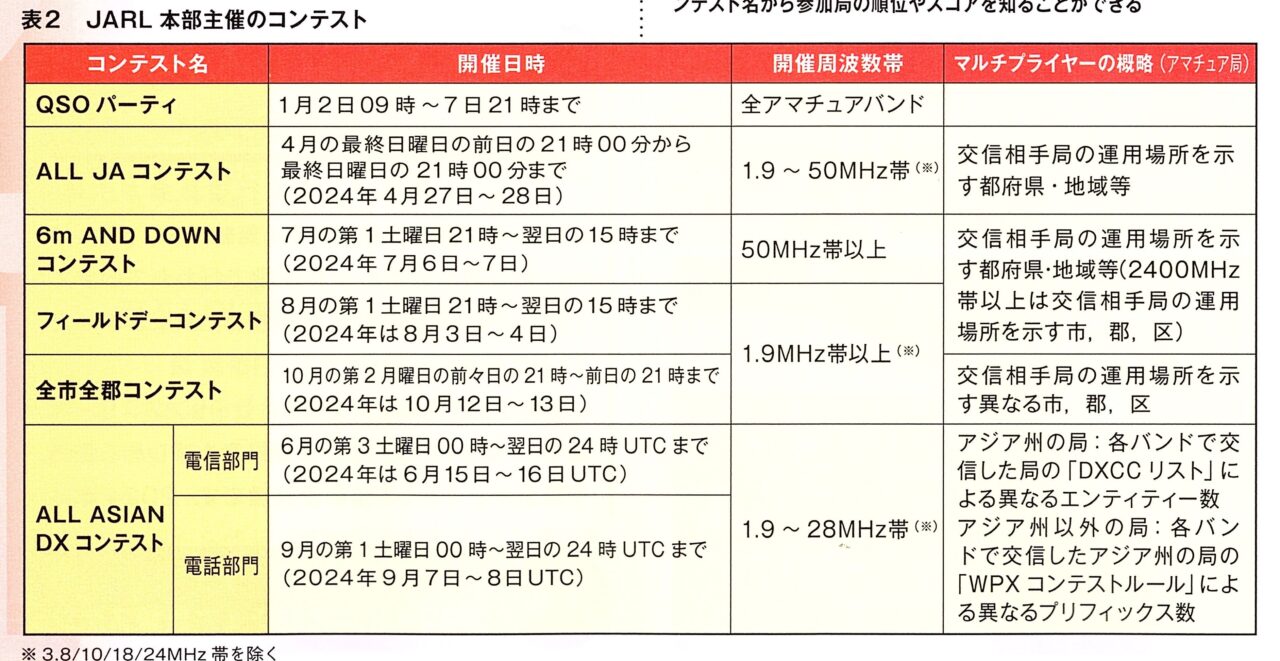 アマチュア無線のポピュラーな楽しみ方の1つがコンテストです。特に参加者の多いJARL主催のコンテストも開催予定されています。