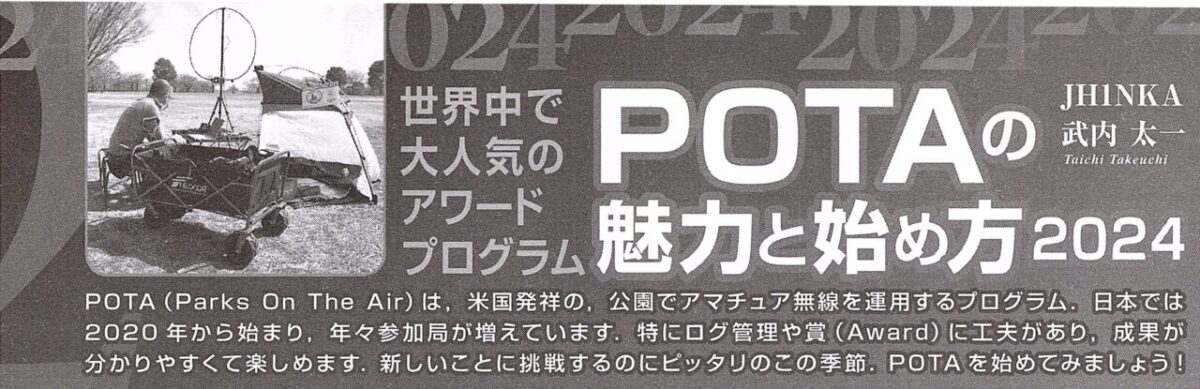 世界中で大人気のアワードプログラム”POTA”は、公園でアマチュア無線を運用するプログラムです。日本では202年から始まり、年々参加局が増えています。