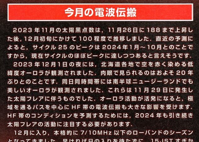 「2024年のHF帯電波伝播の予想」「2024年注目のDXペディシヨン」などの情報が、満載です。