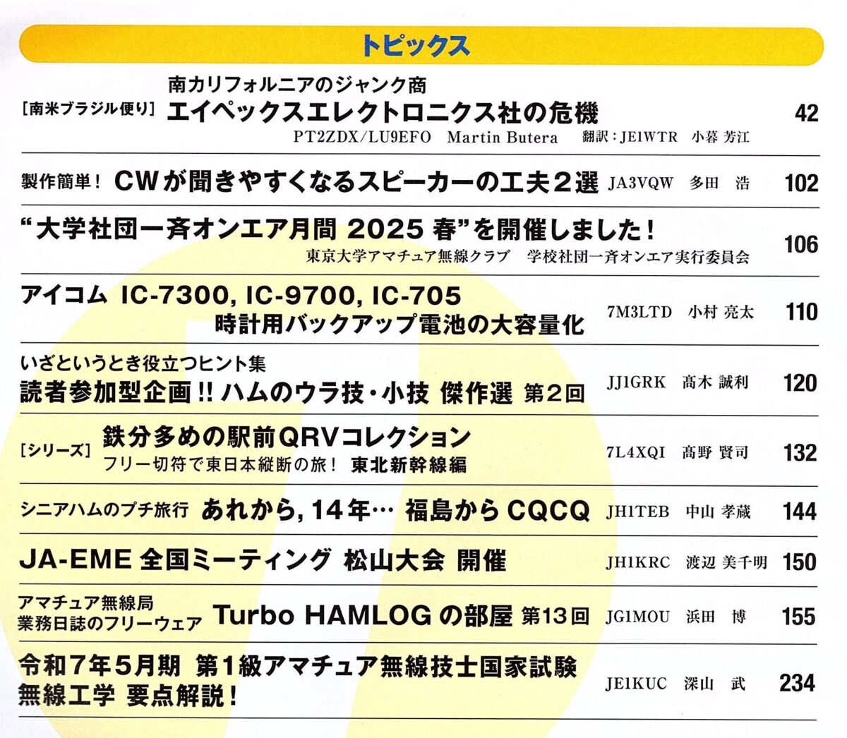 この号を手にしたすべての読者が、新たな知識を得て、アマチュア無線の世界をより一層楽しめることを願っています。