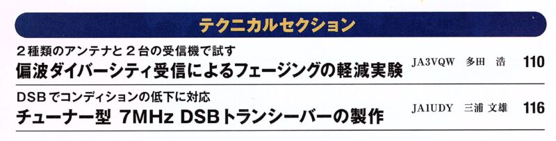 • 「チューナー型 7MHz DSBトランシーバーの製作」