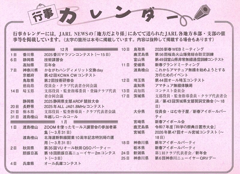 【特別付録】CQ ham radioオリジナルカレンダー2026年版