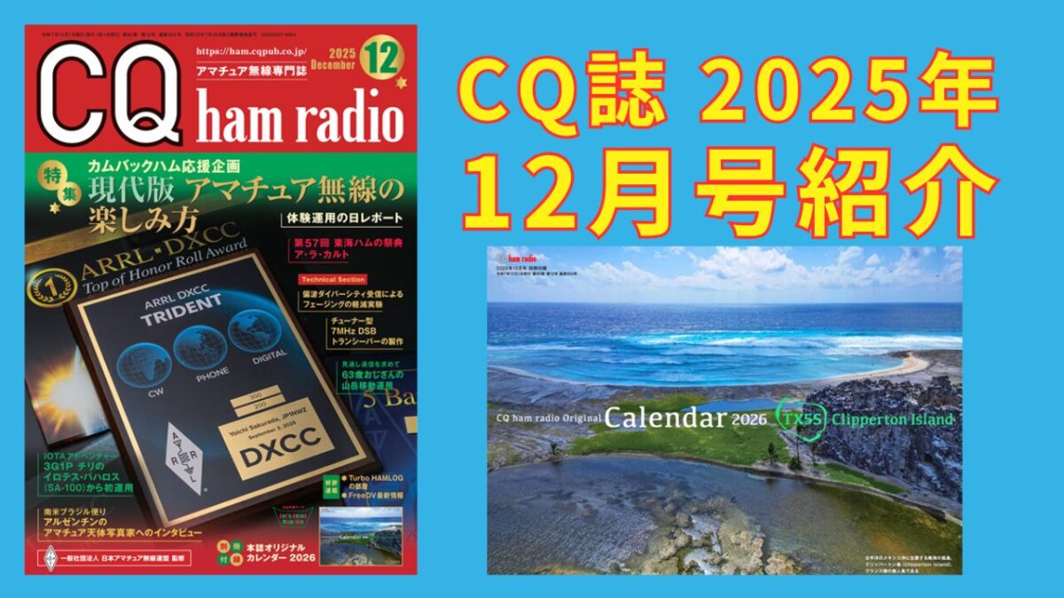 今月は、特別付録「CQ ham radioオリジナルカレンダー2026年版」がついて、価格は1,100円(税込)。