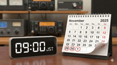 コンテストの日時は世界標準時(UTC)で管理されていますが、私たち日本のハムにとって重要なのはJST(日本標準時)です。スケジュール帳に以下の時間をメモしてください。