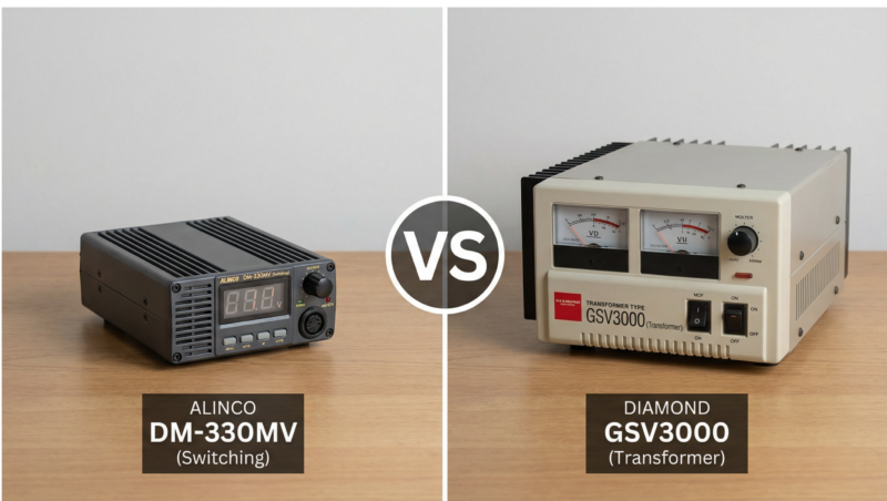 スイッチング式の代表格「アルインコ DM-330MV」と、トランス式の代表格「第一電波工業 GSV3000」。どちらも30Aクラスの定番モデルですが、キャラクターは大きく異なります。あなたに合うのはどちらか、比較してみましょう。