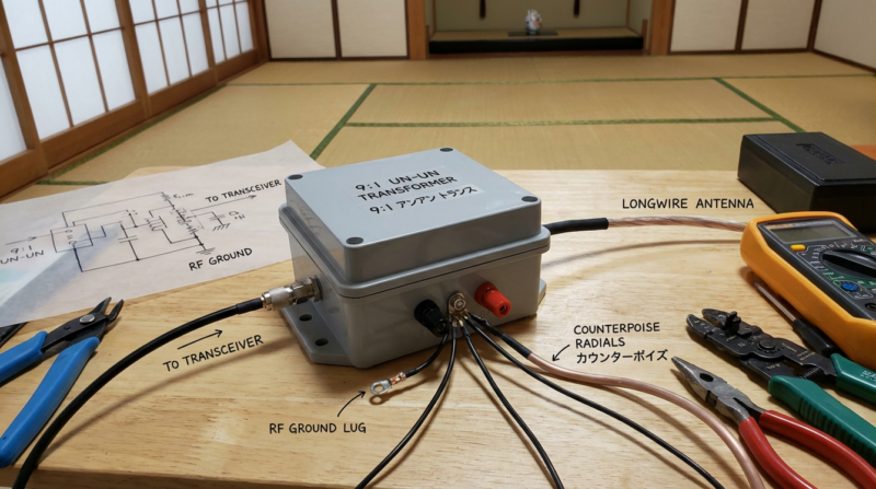 作り方は簡単。数m〜10m程度の電線を数本用意し、UN-UNのアース(GND)側の端子にまとめて接続するだけ。このカウンターポイズを、ベランダの床や室内に這わせることで、アンテナの性能が劇的に向上することがあります。長さや本数を変えて、最もSWRが下がるポイントを探るのも楽しみの一つです。