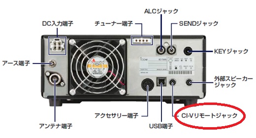無理にUSBのシリアルポートを増やさなくても大丈夫です。IC-7300の場合は、リグの背面にはCI-Vポートがあるのです。(CI-Vリモートジャック)