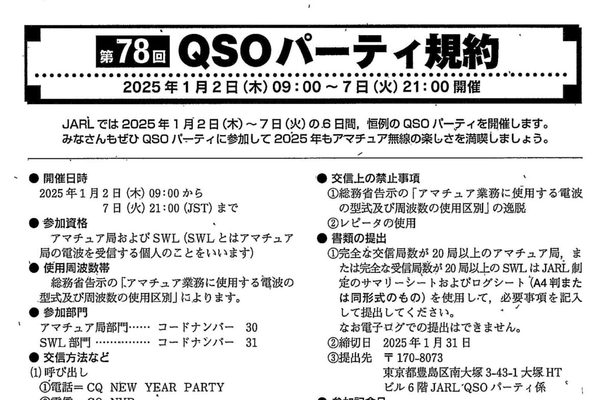 2025年QSOパーティ規約については、次の記事を参照してください。