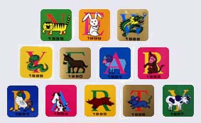 辰のステッカーは“NEW”の“W”の位置に貼りつけます。