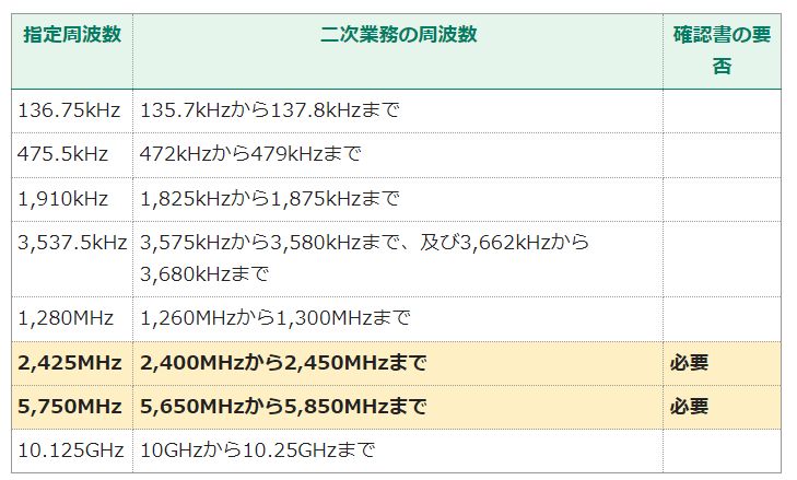 確認書の提出について(2,425MHz帯及び5,750MHz帯)についてはコチラへ(総務省電波利用ホームページ)